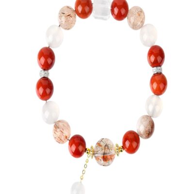 Natural South Red Agate & White Crystal Bracelet | Abundance & Balance Energy Jewelry