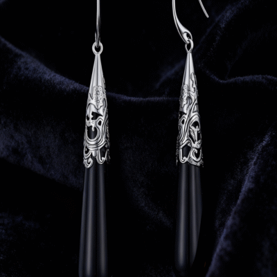 Vintage Black Agate Drop Earrings – Long Teardrop Retro Style
