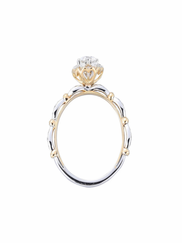 This ArvnDao 1ct Moissanite Rose Blossom Ring captures timeless romance with a rose-inspired crown setting, enhancing the brilliance of the center moissanite. The petals are delicately shaped to form a floral halo, making the ring glow from every angle.