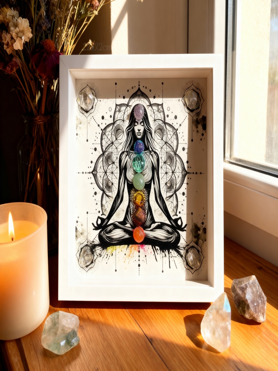 7 Chakra Energy Crystal Art Frame for Meditation & Yoga Space |  Spiritual Decor7 Chakra Energy Crystal Art Frame for Meditation & Yoga Space | Spiritual Decor