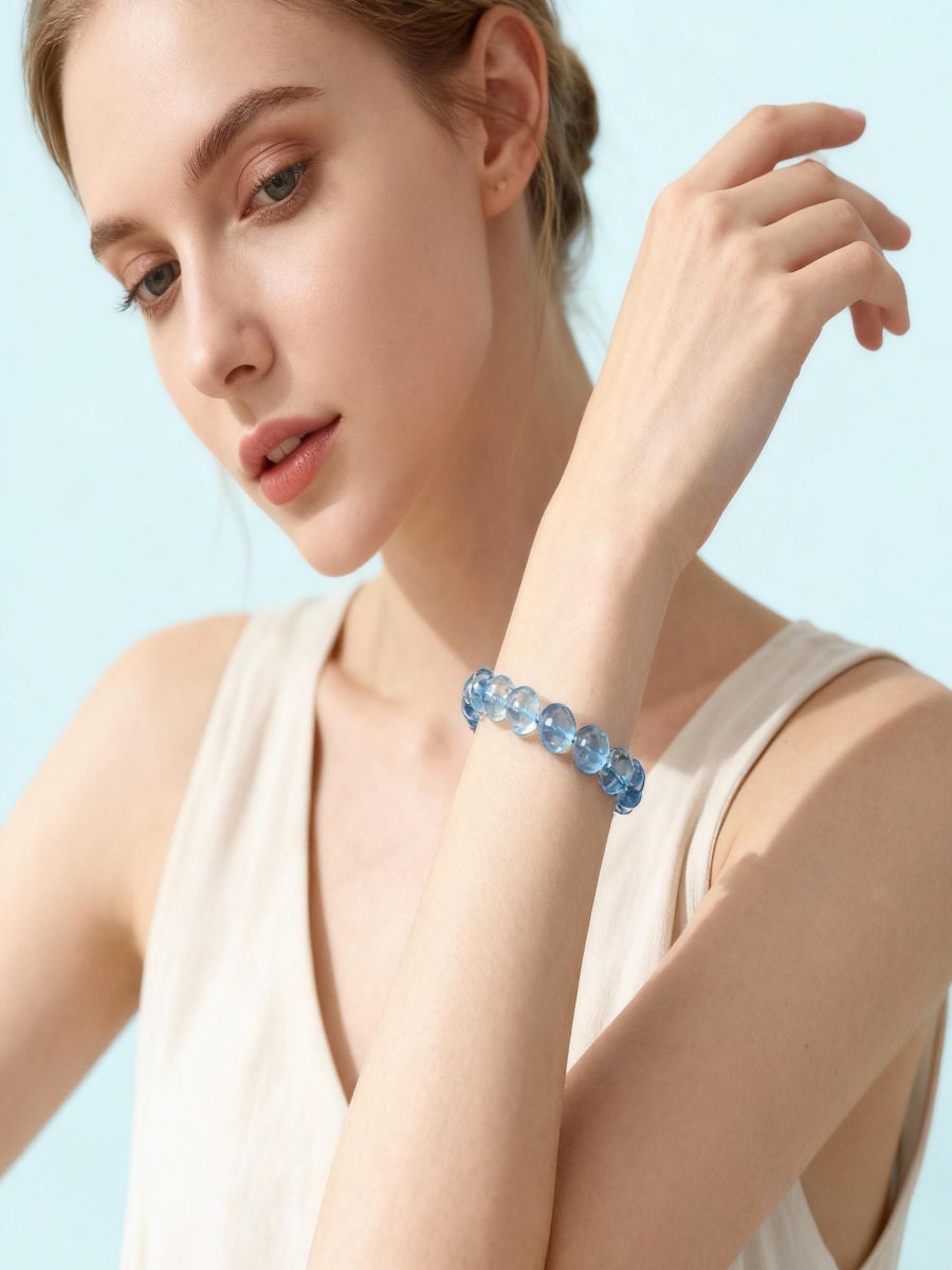 The ArvnDao Aquamarine Crackle Quartz Bracelet radiates a serene oceanic energy, bringing calm, clarity, and emotional healing.
