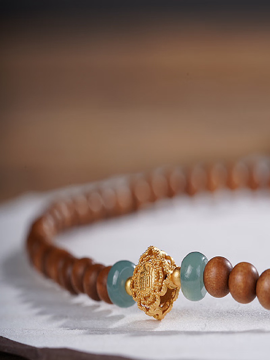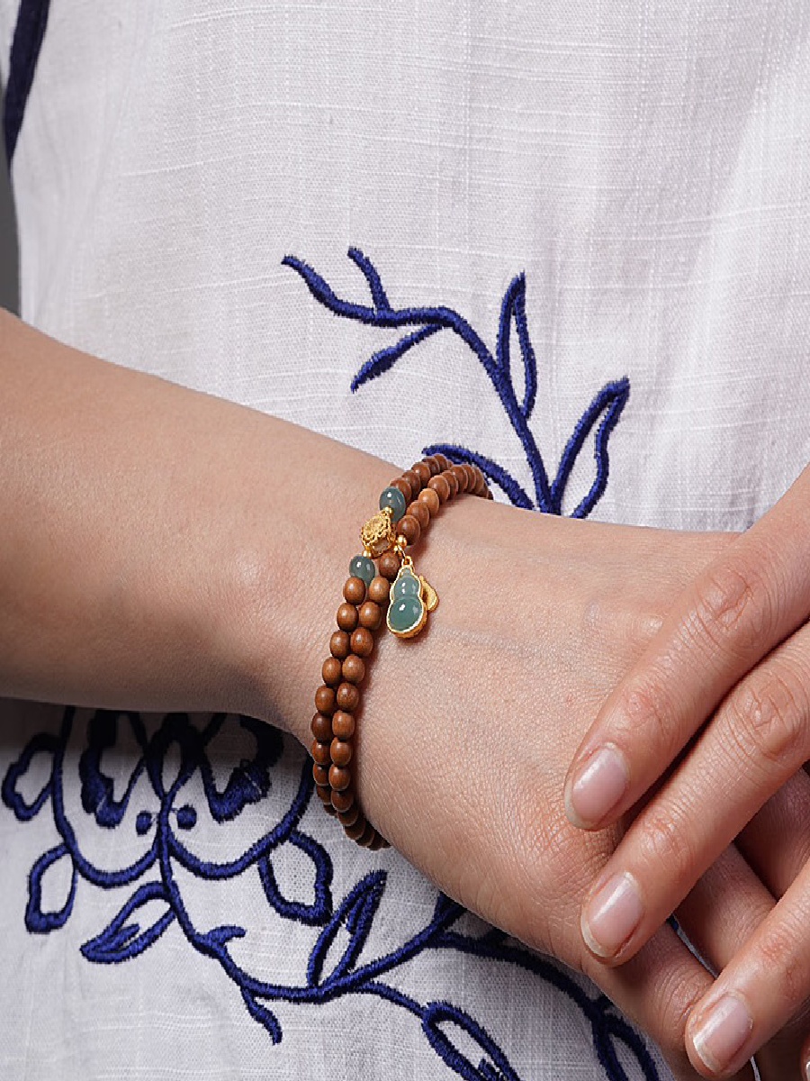 Enhanced with hand-polished wood beads and paired with a natural jade-like gourd charm, this bracelet blends traditional craftsmanship with modern aesthetics—perfect for meditation, healing rituals, and daily wear.