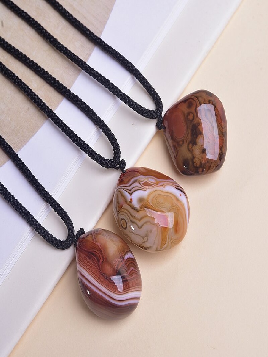 This natural Banded Agate Pendant features unique swirling patterns, each piece showcasing one-of-a-kind earthy lines and Rain-Flower-like textures. Known for grounding and emotional stability, agate helps calm the mind, balance mood, and strengthen inner security.