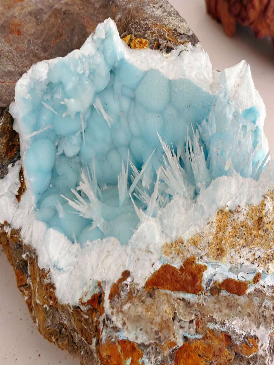 Known for its dreamy sky-blue tones and cloud-like formations, Blue Aragonite is a rare mineral that radiates soft, soothing energy — perfect for anyone seeking emotional healing, inner peace, and spiritual clarity.