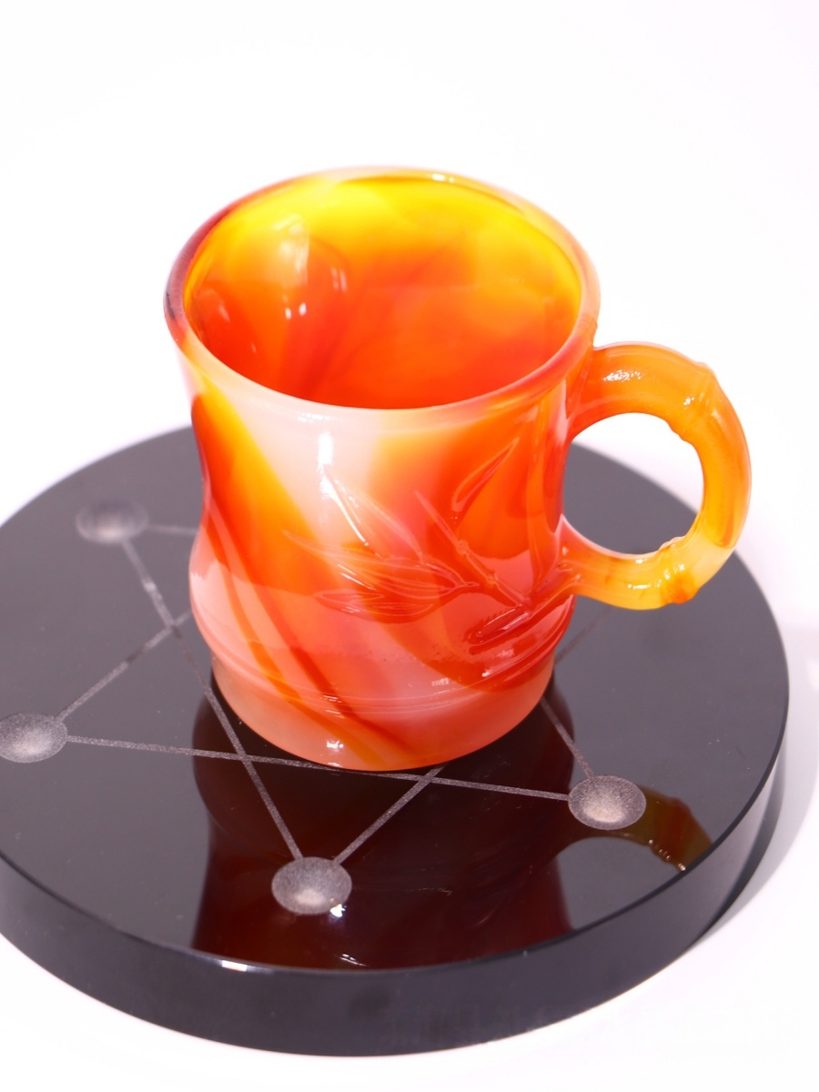 Experience warmth, energy, and elegance with the ArvnDao Carnelian Agate Tea Cup, crafted in a stunning glass-like finish with vivid orange and red tones. Carnelian is known as a stone of vitality, passion, and grounded confidence — making this cup not only a functional piece but also an energetic companion for your tea ritual.