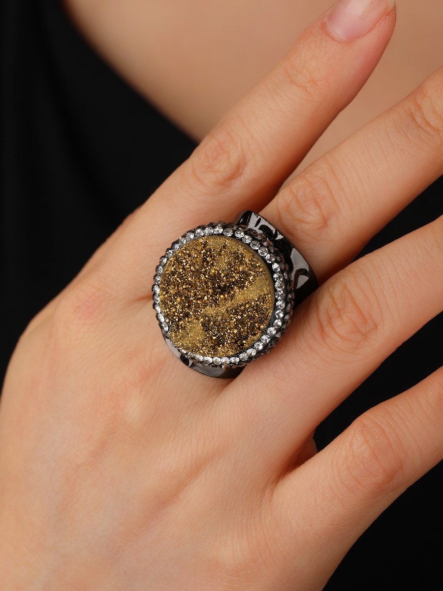 Gold Agate Druzy Ring | Adjustable Black Crystal Statement RingGold Agate Druzy Ring | Adjustable Black Crystal Statement Ring