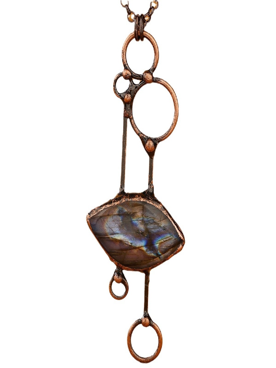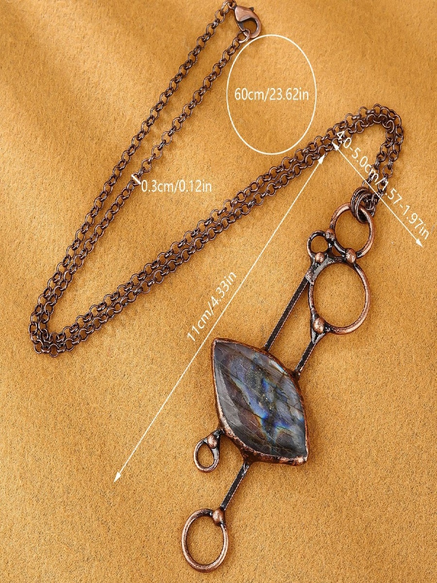 Labradorite & Amazonite Geometric Pendant Necklace | Handmade Vintage Copper DesignLabradorite & Amazonite Geometric Pendant Necklace | Handmade Vintage Copper Design