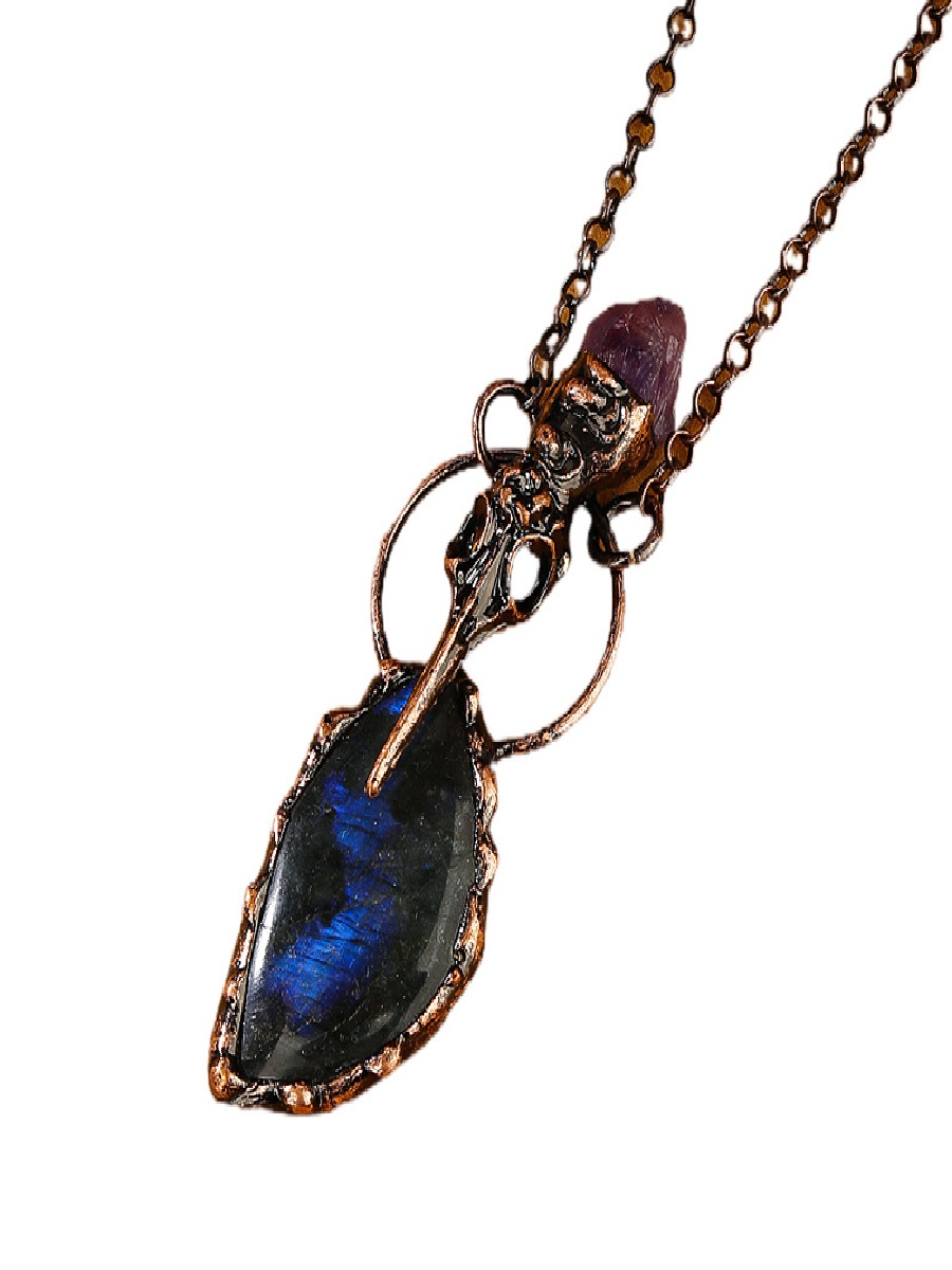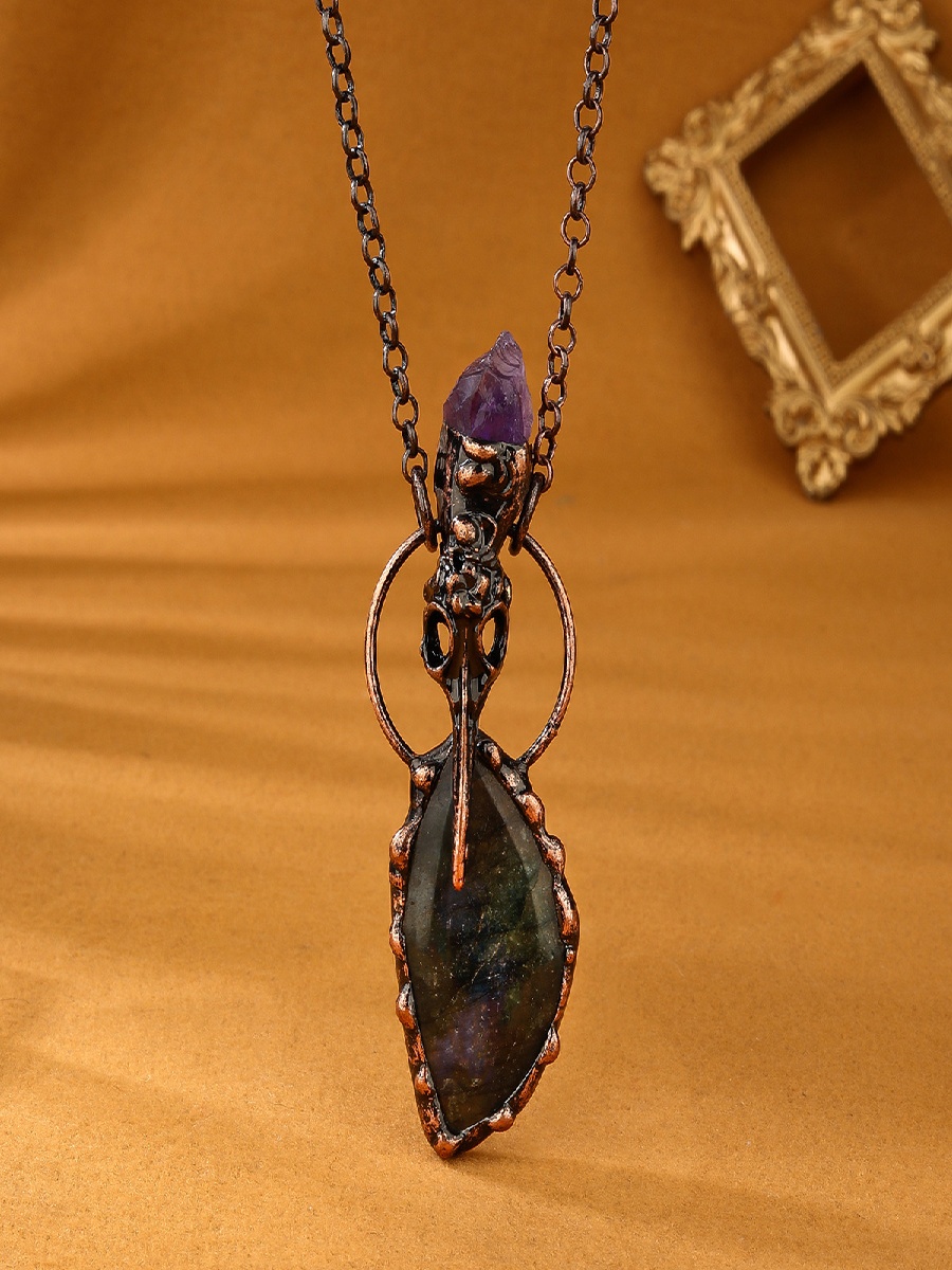 Framed in an artisan rustic copper skull design, this pendant carries a strong mystical and transformative energy.