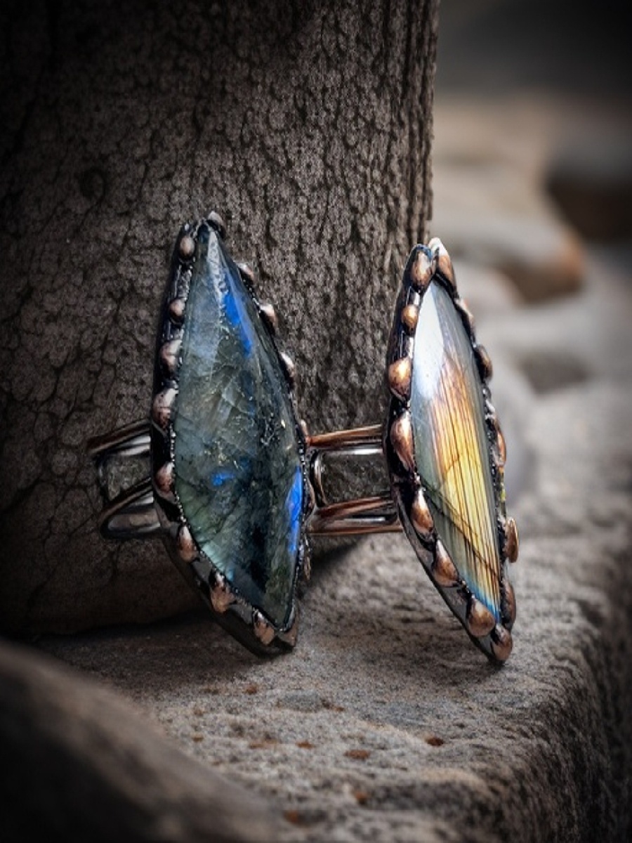 This bold Labradorite Statement Ring features a natural, multi-flash labradorite stone set in a handcrafted vintage copper bezel.