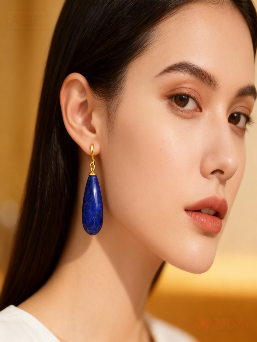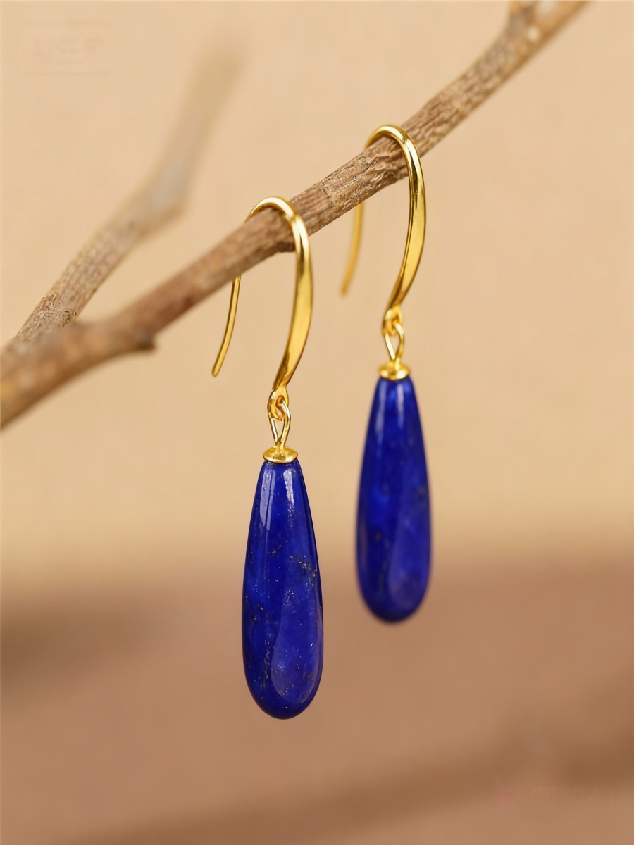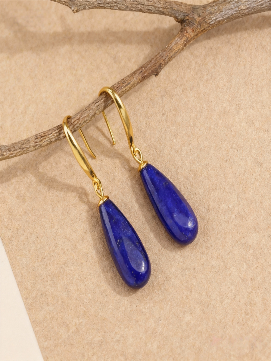These ArvnDao earrings showcase the iconic Klein blue tone of natural Lapis Lazuli, shaped into smooth water-drop pendants.