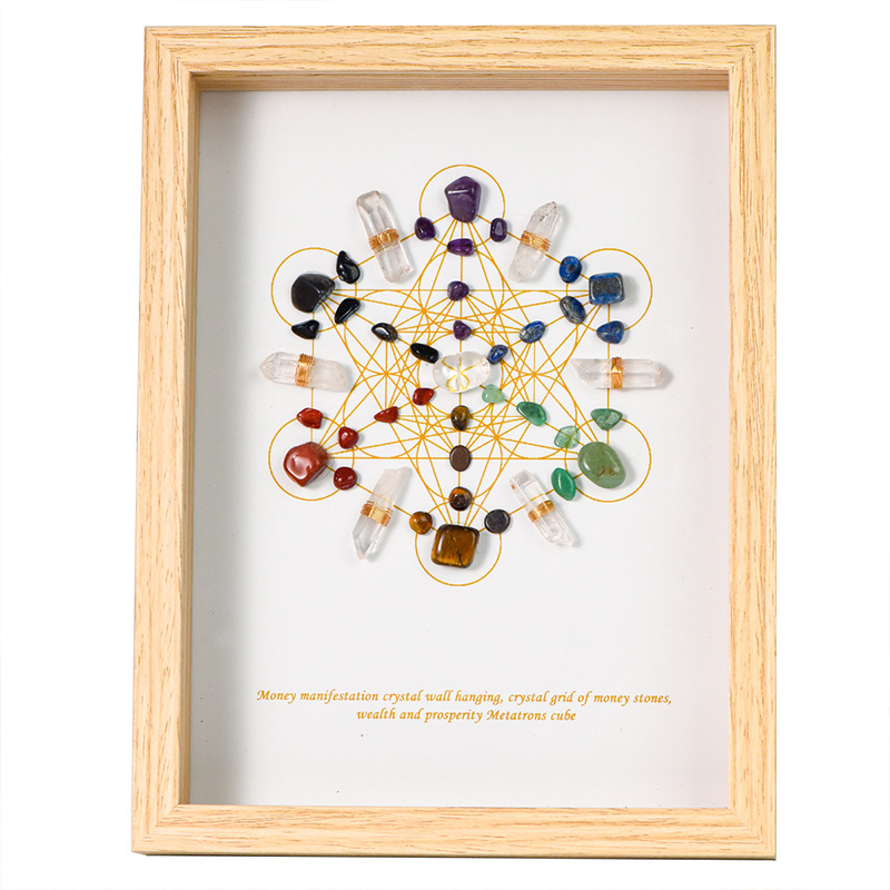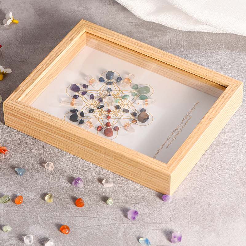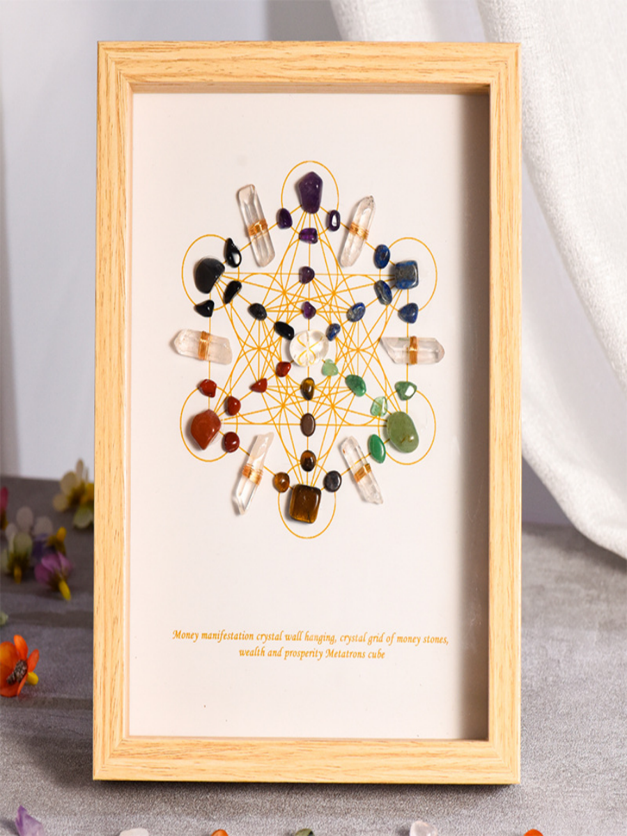 Invite abundance and sacred balance into your space with the ArvnDao Metatron’s Cube Crystal Grid Frame, a stunning fusion of natural crystal energy and sacred geometry art.