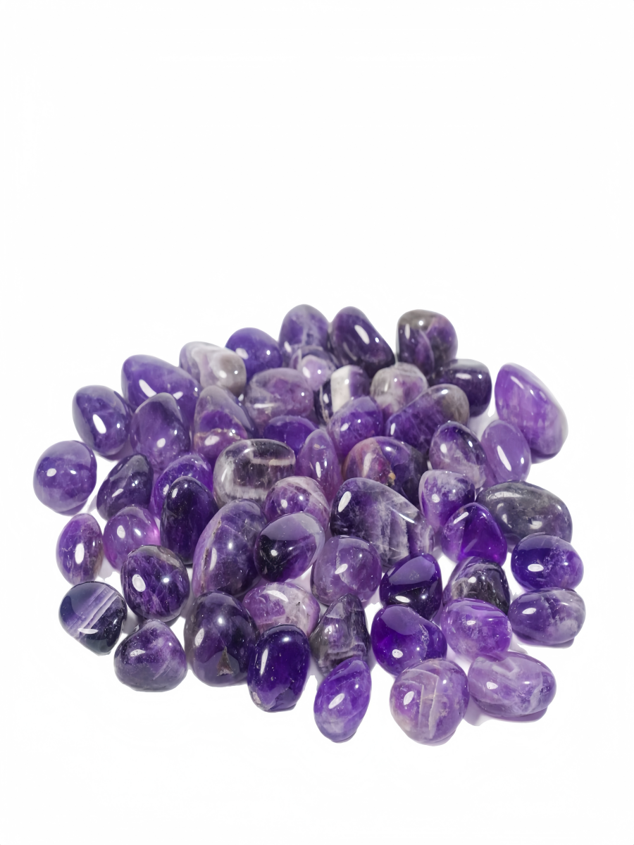 Known as the “Stone of Spiritual Wisdom,” Amethyst promotes tranquility, relieves stress, and supports restful sleep. Each tumbled piece carries a deep violet hue and smooth surface, perfect for meditation, energy healing, or decorative harmony.