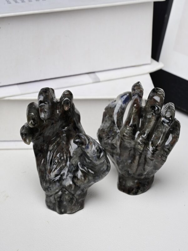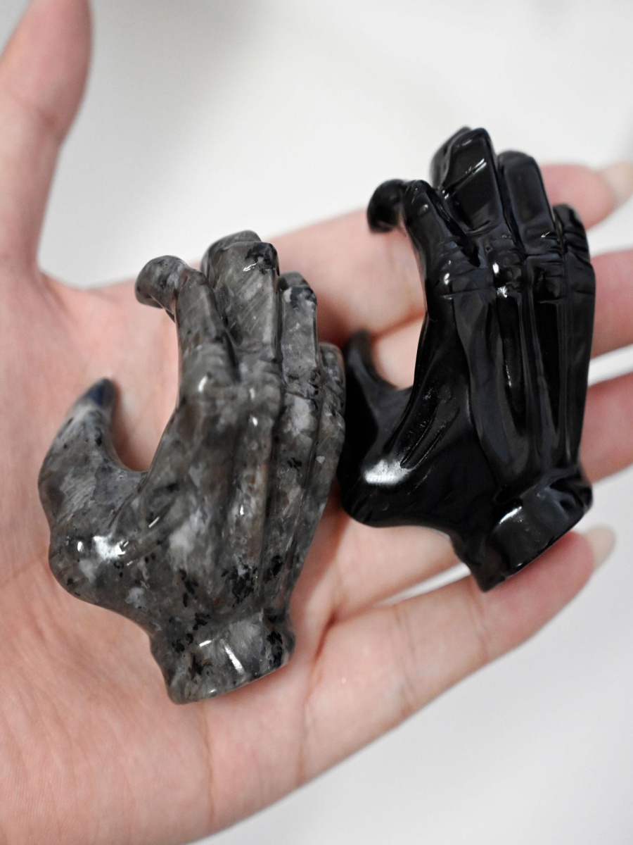 Unleash the raw power of natural stone with the ArvnDao Crystal Claw Hand Carving, available in Obsidian and Labradorite.