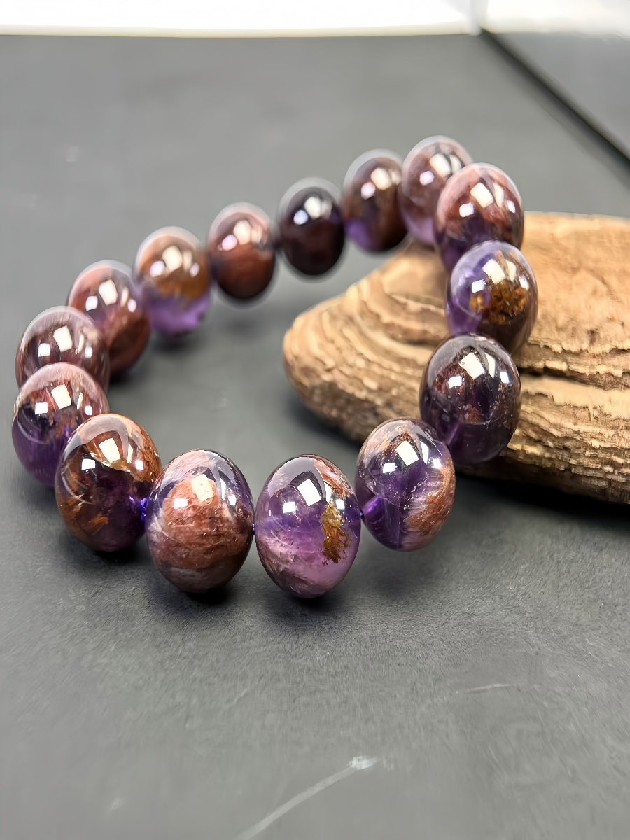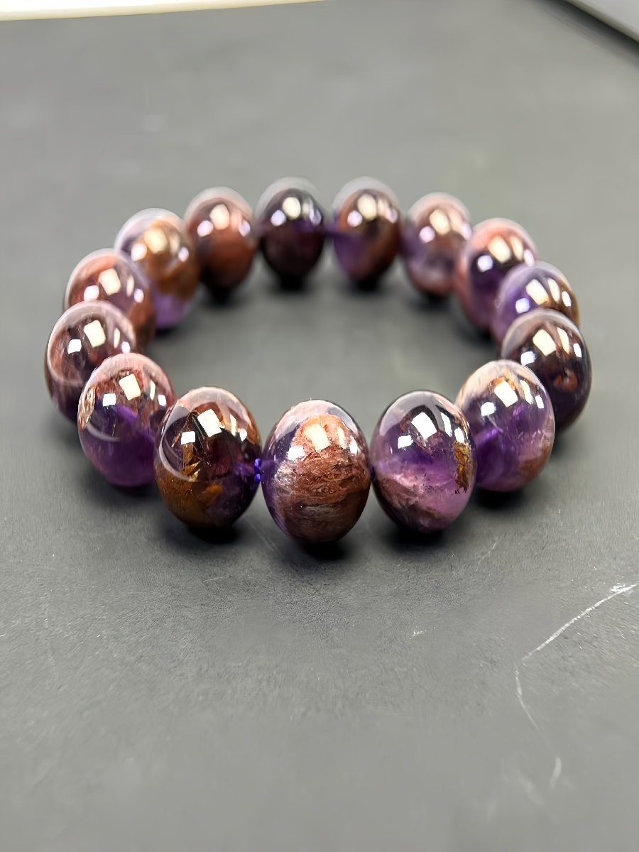 This high-grade amethyst phantom bracelet enhances intuition, protection, and personal transformation while radiating rich purple hues and deep phantom textures.