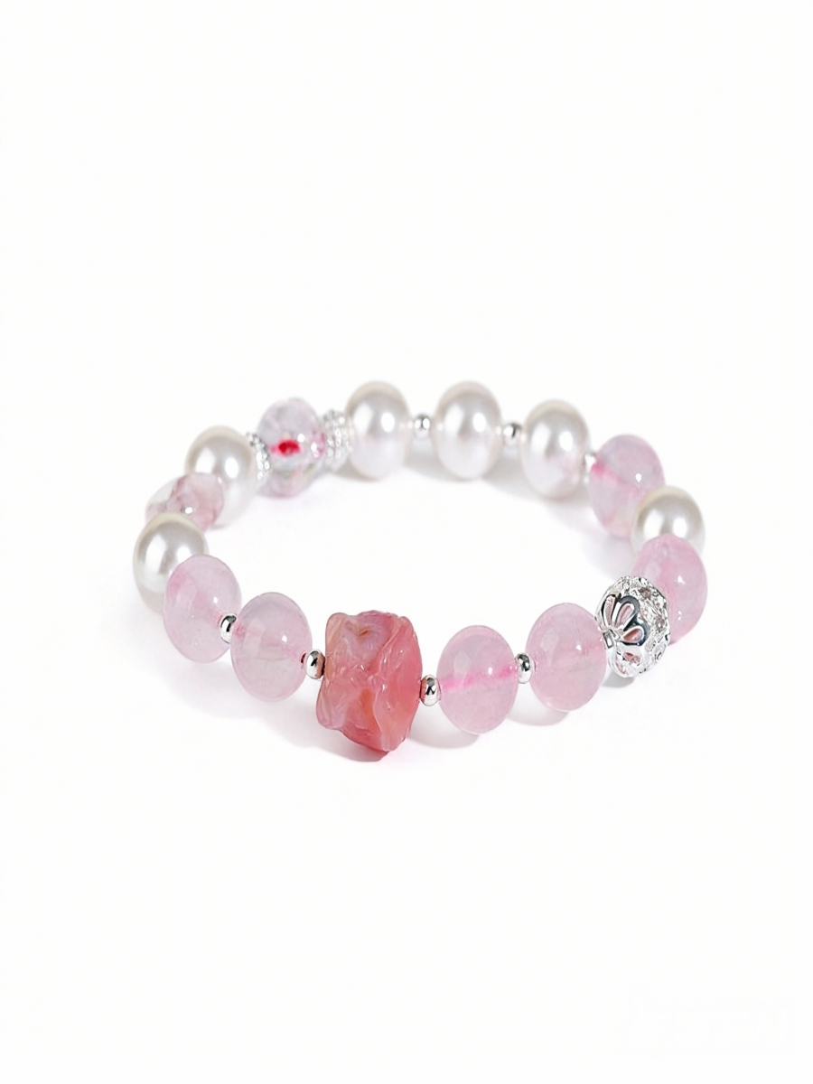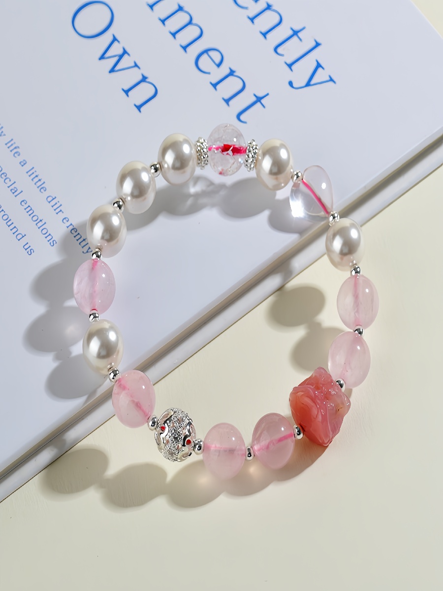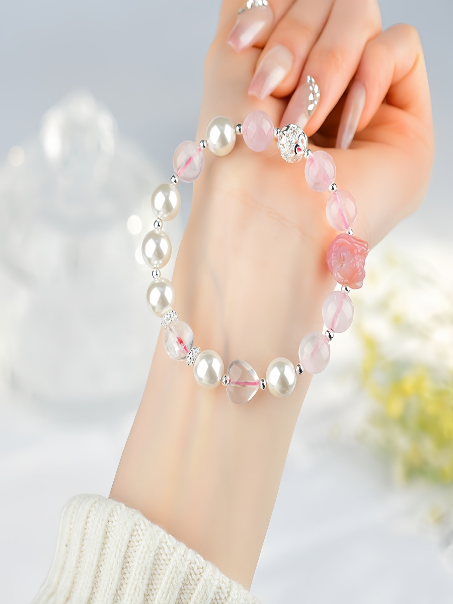 Featuring premium rose quartz beads, shell pearls, and a hand-carved rose quartz Pixiu charm, this bracelet blends elegance with powerful metaphysical energy.