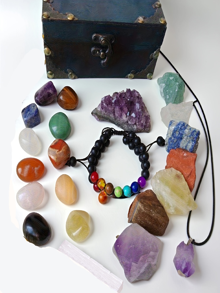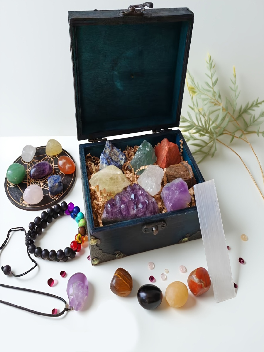 Experience complete energy alignment and spiritual cleansing with the ArvnDao Premium Chakra Crystal Healing Box — a full-spectrum crystal kit designed for meditation, cleansing, chakra balancing, and manifestation rituals.