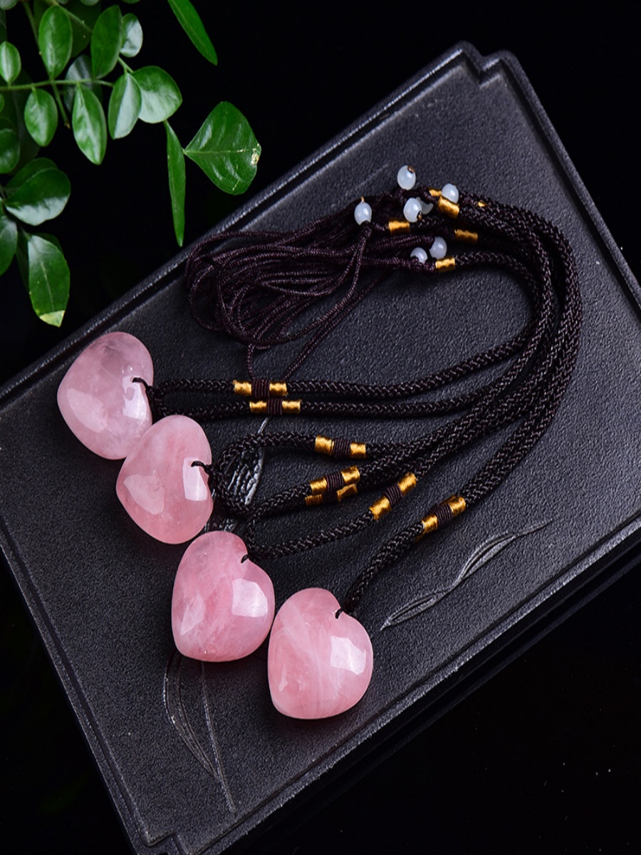 Carved from genuine rose quartz, each heart-shaped gemstone glows with soft pink energy, symbolizing unconditional love, compassion, and emotional healing.