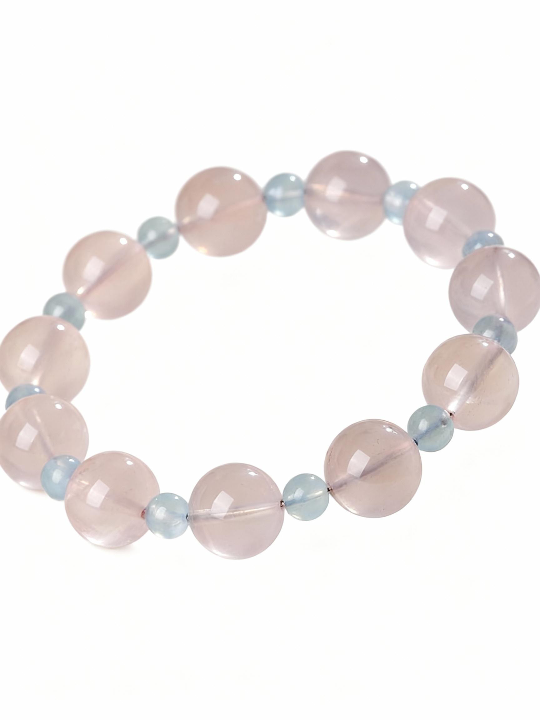 Embrace gentle love and emotional calm with this Natural Rose Quartz & Aquamarine Bracelet from ArvnDao.