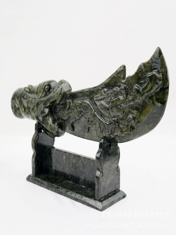 Carved from natural Serpentine Jade—known for its deep green tone and smooth texture—this artwork showcases a majestic dragon, symbolizing power, protection, and prosperity in Eastern tradition.
