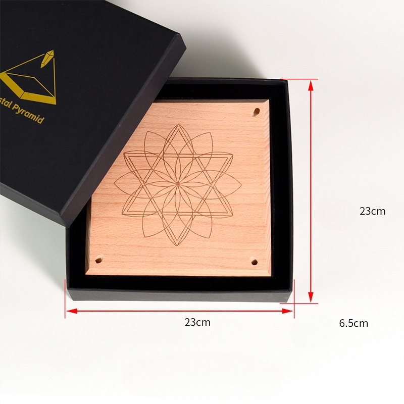 Solid wood base engraved with sacred geometric yantra pattern